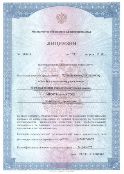 МБОУ Тальская СОШ,663653 Россия, Красноярский край, Ирбейский район, с.Талое, ул.Лесная, 21